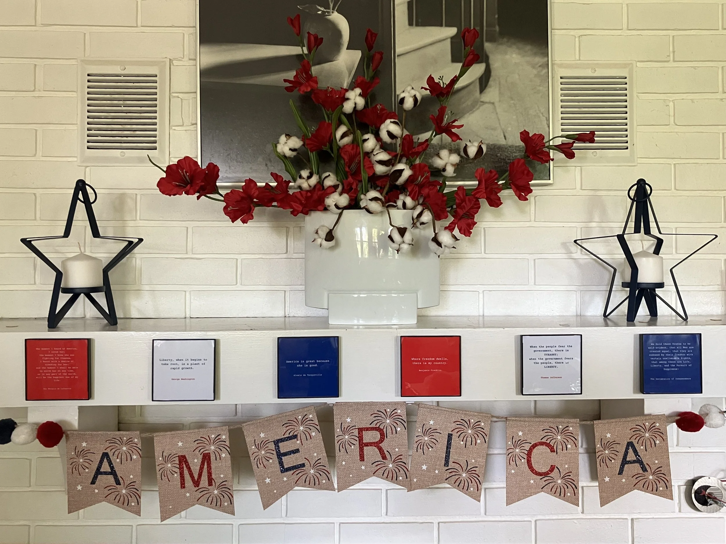 But what would go on top of the mantel shelf? The conundrum really troubled me. Just throwing up some stars and flags and the like wasn’t going to cut it. After all, I had some big shoes to fill. My mother always did fantastic mantels. And my father was a connoisseur of beautiful, artful design. I wanted something tasteful and creative. I didn’t realize it then, but I wanted something that checked all the boxes for the holiday but also paid homage to my artistic heritage. And, with no idea in mind, that felt like an impossibly tall order to fill.